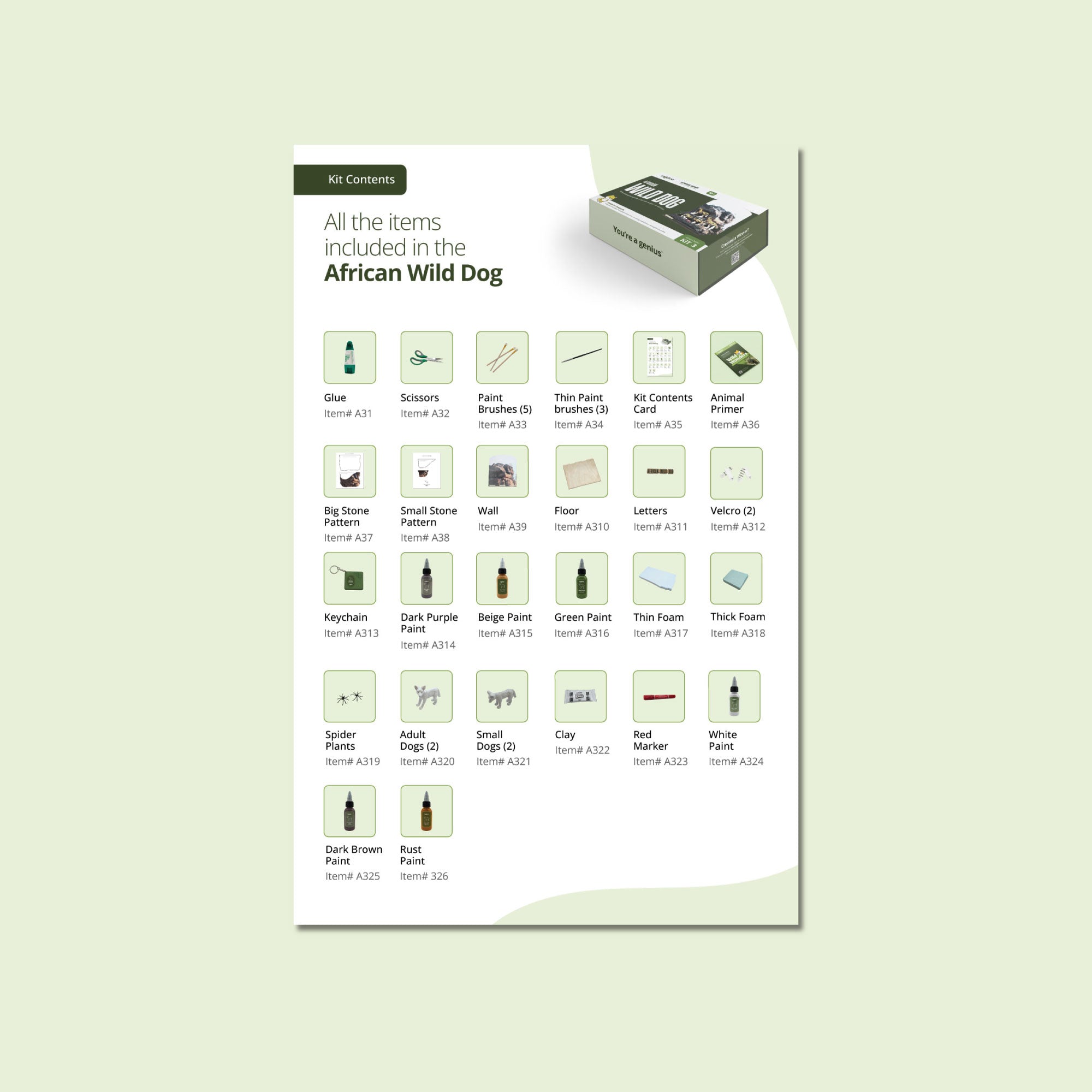 Use this video as a guide to assemble your African Wild Dog Kit.